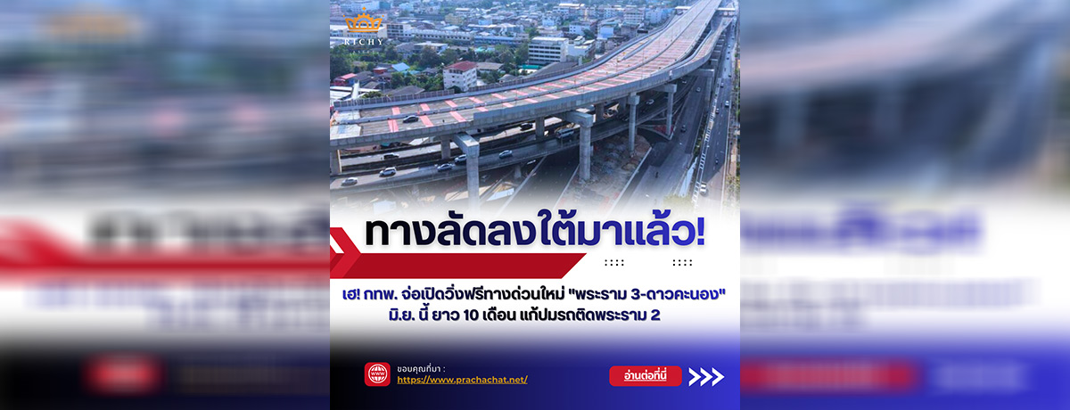 เฮ! กทพ. จ่อเปิดวิ่งฟรีทางด่วนใหม่ "พระราม 3-ดาวคะนอง" มิ.ย. นี้ ยาว 10 เดือน แก้ปมรถติดพระราม 2